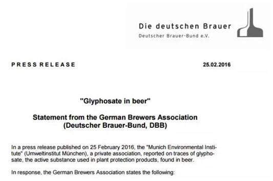 新聞中提到,14款熱銷啤酒檢測出農(nóng)藥殘留的結(jié)果,是由慕尼黑環(huán)境研究所公布的研究報告中顯示的。對此,鐘凱表示,慕尼黑環(huán)境研究所是一個非官方的私營機構(gòu),而草甘膦作為合法的農(nóng)藥在德國和全世界已經(jīng)使用了長達幾十年。