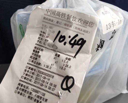 也有乘客表示,高鐵外賣配送費普遍為8元,和普通外賣的四五元相比高了一點。而且,“高鐵外賣”不同商家的起送費也不相同,比如在鄭州東站,蕭記三鮮燴面起送費為28元、樂稻港式餐廳要48元,也就是說點餐超過這個價格商家才會接單配送。較高的起送費再加上每一訂單8元的配送費令一份餐食價格高達幾十元,總體價位偏高。