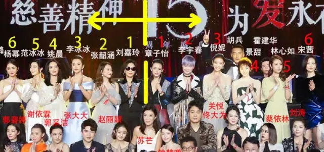 說實話,這可能是我見過最混亂的大合照了,事先也沒有安排好明星的站位,最后站成什么樣也怪不得某個明星了~