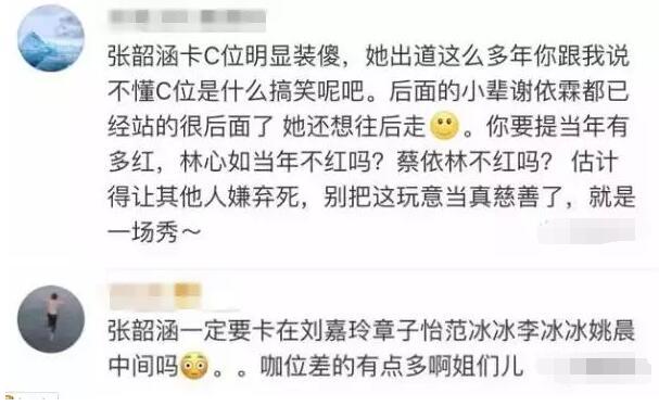 那么問題來了,張韶涵站了C位,是沒注意還是有心機呢?你怎么看