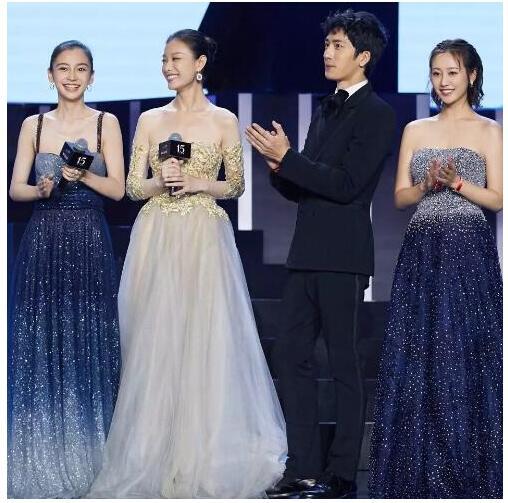 baby身著一襲漸變色長裙星光長裙,閃瞎你的眼了沒???尷尬的時刻來了,同臺的李純也是星光裙。