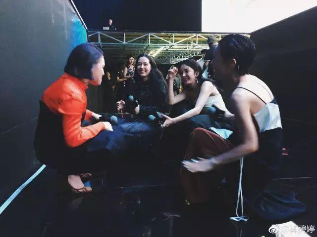 劉濤離姐妹們站的老遠,和蔡依林相談甚歡。