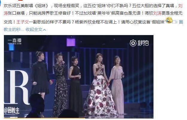 歡樂頌五美直接把感情寫在歌上,可惜,一首《姐妹》唱的比時代姐妹花還尷尬。