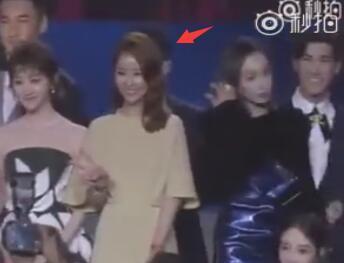 然后全場最尷尬的一幕出現(xiàn)了!張韶涵一開始是跟著鄧超隊的成員一起上臺,然后站在了劉嘉玲邊上,當(dāng)時其實是舞臺上所有人的最邊邊一個,但她站的位置確實是舞臺中間。