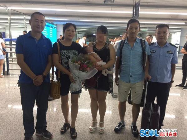 在固定相關(guān)證據(jù)后,8月28日下午16時,距離何小英報案一周后,在辦案民警的陪同下,何小英母子乘坐航班安全降落在綿陽南郊機場。