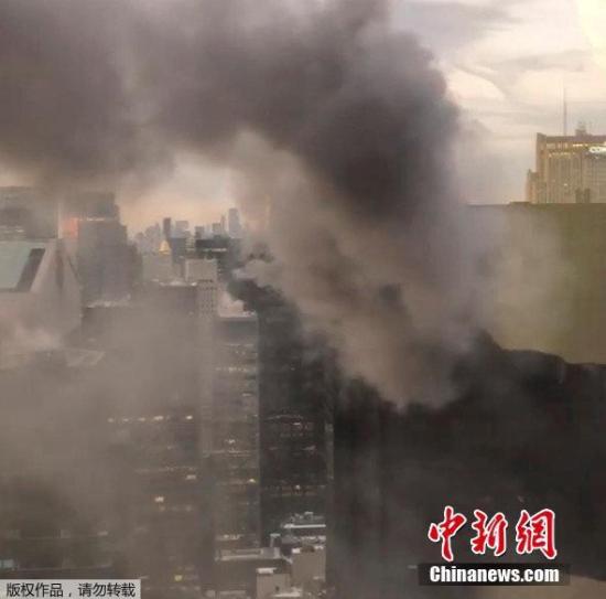 資料圖片:當?shù)貢r間2018年1月8日,美國紐約,據(jù)美國CBS網(wǎng)站報道,位于紐約市曼哈頓第五大道與56街交叉處的特朗普大廈起火,現(xiàn)場濃煙滾滾。
