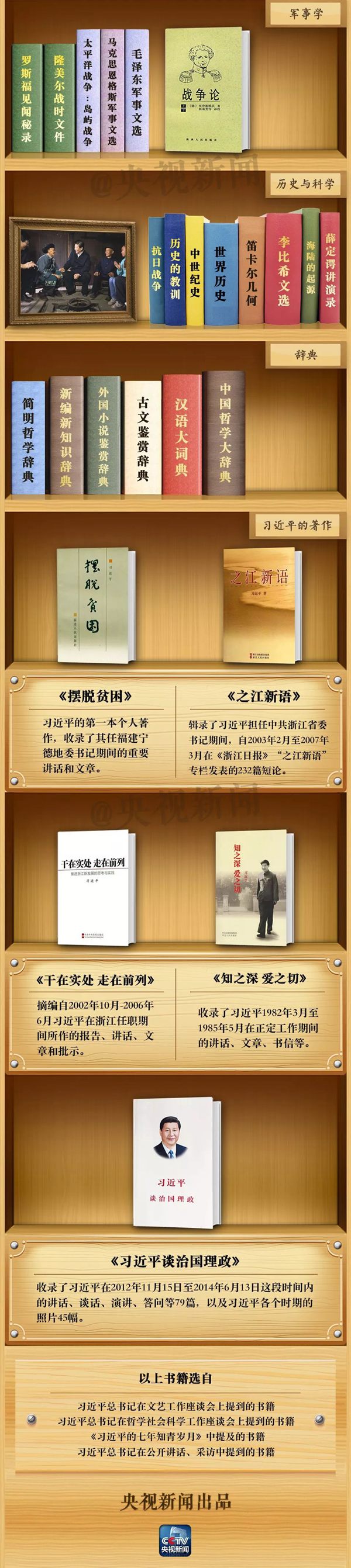 在這個節(jié)日,央視新聞定制了習近平總書記的“書柜”,來看看總書記的“書單”和讀書感悟吧。