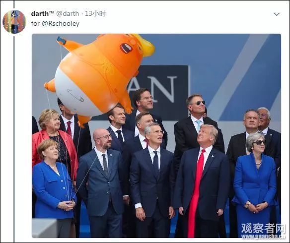 但是,白宮社群媒體主任史卡比諾 (Dan Scavino Jr。)卻站出來指責“假新聞”。他表示,當時各國領(lǐng)導人正在抬頭看天空中飛過的13國直升機,并配上了一張動作整齊劃一的照片。