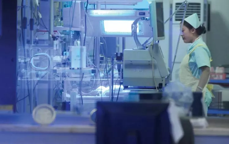 2011年6月,遼寧省沈陽市婦嬰醫(yī)院,重癥監(jiān)護(hù)室的醫(yī)護(hù)人員照看著一名新生嬰兒。該名新生兒患有溶血癥,急需“熊貓血”,家屬通過微博在網(wǎng)上求助找到36名獻(xiàn)血者,換血后男嬰轉(zhuǎn)危為安。圖/視覺中國(guó)