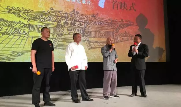 在掌聲中,河南電視臺、央視紀錄頻道的全體領(lǐng)導等與功夫名家們上臺共同啟動首映。