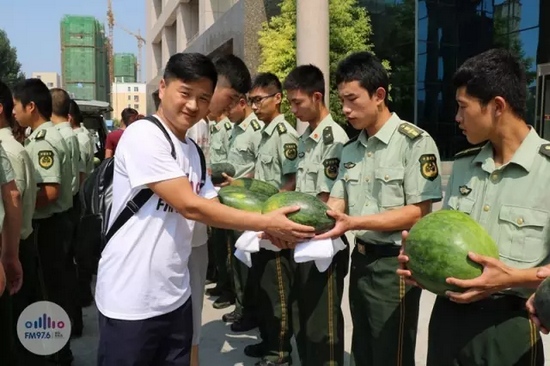 我們給他們每人都送了一個西瓜,遞到他們手里跟他們說:“你們辛苦了!”的時候,我們明顯能夠感覺到他們的喜悅,他們飽經(jīng)風霜的臉上洋溢的笑容,讓人覺得特別溫馨、真誠。