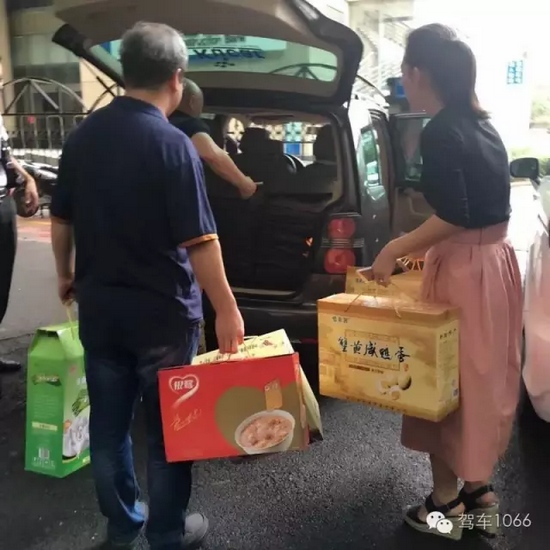 2016年7月31日早上6點,河南電臺FM106.6《二姐駕到》欄目組的二姐們在當?shù)刂驹刚叩呐阃拢瑴蕚涮皆L抗戰(zhàn)老兵的物資。