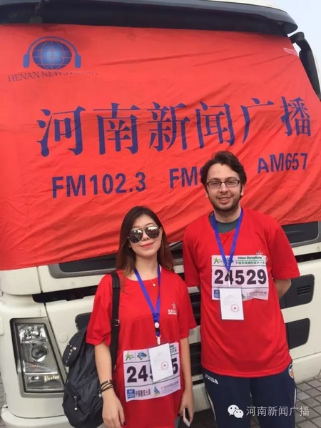 國家大賽,當然要有國際友人哦。這位美女來自哈薩克斯坦,中文說的非常溜,這位型男來自烏干達。友誼第一比賽第二,兩位國際友人說,比賽完要好好逛逛我們河南的青山秀水~