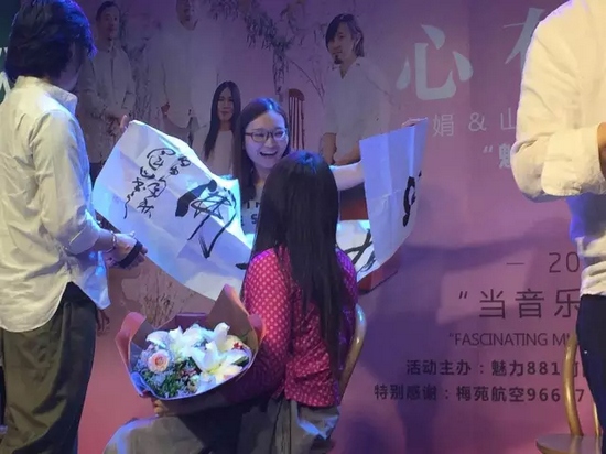 熱情的粉絲上臺送花、送字