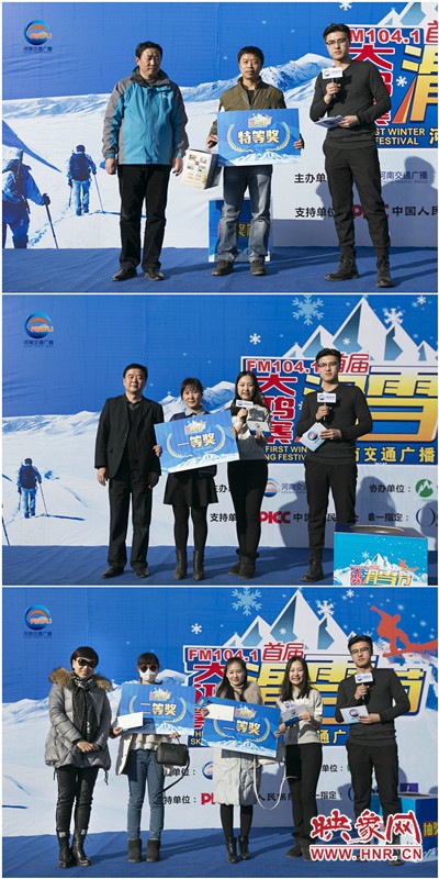各位親,12月26號有沒有去滑雪?。慨?dāng)天上午,F(xiàn)M1041河南交通廣播聯(lián)合禹州市委宣傳部、禹州市旅游局、禹州市大鴻寨臥佛山旅游開發(fā)有限公司、禹州市登山協(xié)會、中國人保財險鄭州市分公司、河南雲(yún)釧商貿(mào)有限公司共同舉辦了河南交通廣播首屆大鴻寨車友滑雪節(jié)。300輛車,1200多名車友齊聚禹州大鴻寨high玩滑雪,體驗冬季里的“速度與激情”,也分享了萬元大獎。