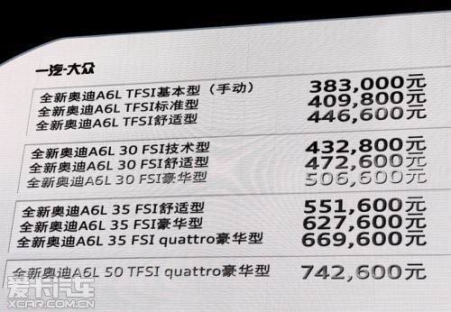 | 全新奧迪A6L車型 | 官方指導(dǎo)價(jià)(萬(wàn)元) |