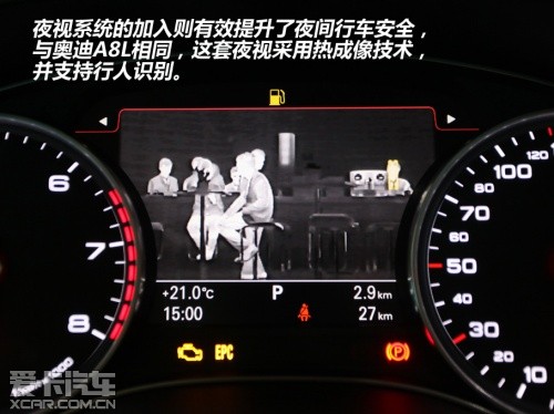 而在全新的頂配車型中,夜視系統(tǒng)的加入則有效提升了夜間行車安全,與奧迪A8L相同,這套夜視采用熱成像技術(shù),并支持行人識別,在同級車中雖然并非首創(chuàng),但絕對實(shí)用。