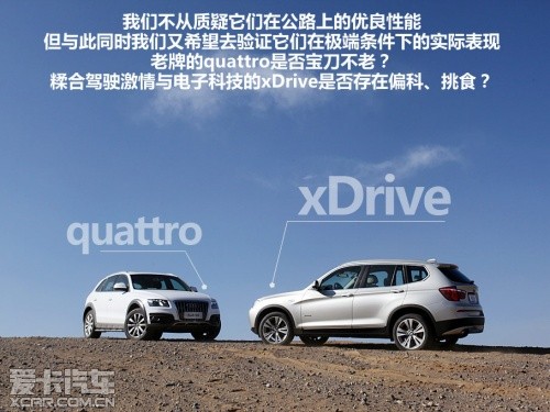 我們不從質(zhì)疑它們在公路性能上的優(yōu)良表現(xiàn),但與此同時我們又很希望去驗證它們在極端條件下的實際表現(xiàn),于是,在本期的四驅(qū)測試中,我們挑選了目前市場上最具代表性的兩款車,在荒蕪的沙地上來一次爬坡測試。到底看看在公路上“生龍活虎”的渦輪增壓發(fā)動機(jī)在越野路況下的實際表現(xiàn)到底如何?