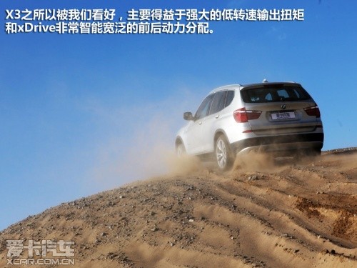 或許是奧迪Q5完成測試的過程比較順利,我們對接下來即將登場的寶馬X3也普遍比較看好,這或許就是思維慣性帶來的固定套路吧。然而在實地測試過程中,這臺X3攀爬沙丘的過程卻沒有表現(xiàn)出它在公路上所煥發(fā)出的霸氣。400?!っ椎淖畲笈ぞ卦诔鞘械缆分校踔猎诟咚俟飞隙际菬o與倫比的,但移步至眼前狂風(fēng)大作的沙丘,這400?!っ椎呐ぞ貏t像是心有余而力不足的悲情英雄。