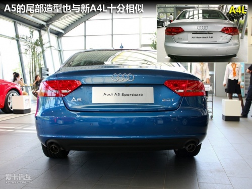 如果不仔細(xì)看,你將很難把它和新A4L區(qū)分開,它的車頭部造型幾乎與A4L完全相同,車身尾部也僅僅是尾燈與A4L略微不同。如果不是尾部的A5字樣標(biāo)識,很多人都可能會“看花眼”。事實上,奧迪A5 Sportback的車身尺寸也與歐版奧迪A4較為接近。