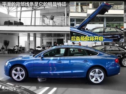 5月23日,奧迪A5/S5全系共10款車型正式在全國上市,其中包括全新的A5/S5 Cabriolet敞篷轎跑車、A5/S5 Sportback五門轎跑車和全新的A5/S5 Coupe雙門轎跑車,以及充滿動感個性的A5 Coupe 2.0T風(fēng)尚版。今天我們在4S店拍攝到的這輛藍(lán)色的A5為售價52.8萬的Sportback 2.0T車型。