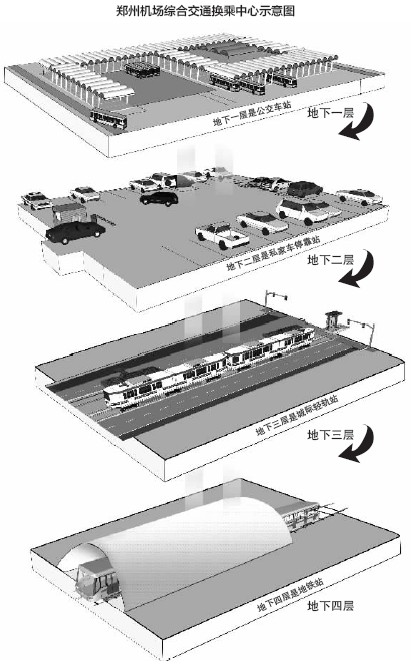 機場綜合交通換乘中心建成后,鄭州機場將成實現客運“零距離換乘”和貨運“無縫銜接”的現代綜合交通樞紐。它也將成為繼上海虹橋機場之后,全國第二個將城際鐵路、高速公路、高速鐵路等多種交通方式有效銜接的機場。