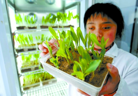 3月27日,浚縣種子站工作人員在查看光照培養(yǎng)箱里培養(yǎng)的種苗。近年來(lái),浚縣實(shí)施“科技興糧”戰(zhàn)略,糧食生產(chǎn)連年獲得豐收。目前,浚縣100多萬(wàn)畝小麥長(zhǎng)勢(shì)良好。 新華社發(fā)