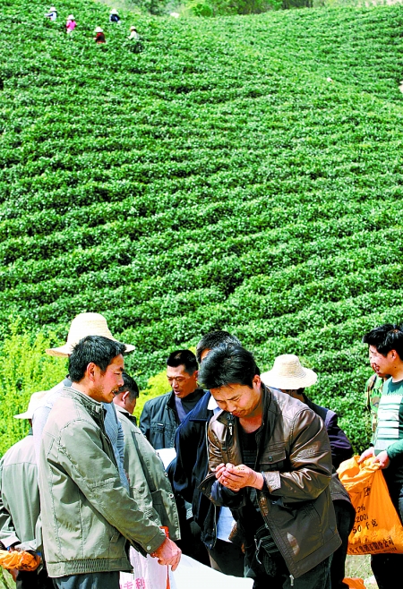 圖 浉河區(qū)浉河港鄉(xiāng)是信陽毛尖的主產(chǎn)區(qū),這里山上采茶,山下就有很多客商現(xiàn)場進行鮮葉交易。