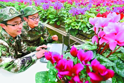 12月19日,鄢陵縣柏梁鎮(zhèn)民兵在網(wǎng)上銷售花卉。今年,該縣在民兵中開展了“一名民兵一個(gè)項(xiàng)目”活動(dòng),并成立了“民兵創(chuàng)業(yè)示范基地”,引導(dǎo)民兵選擇回報(bào)率高、銷路相對(duì)暢銷的花卉作為創(chuàng)業(yè)項(xiàng)目,帶動(dòng)周邊農(nóng)戶種花致富。牛書培 權(quán)國(guó)棟 攝