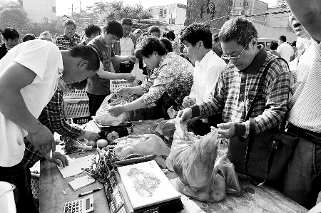在現場,管城區(qū)商務局的工作人員忙個不停。該局工會主席李國占說,不到6點半,就有很多市民提著籃子來買菜,7點鐘開始賣菜時,已經有200多人在排隊。