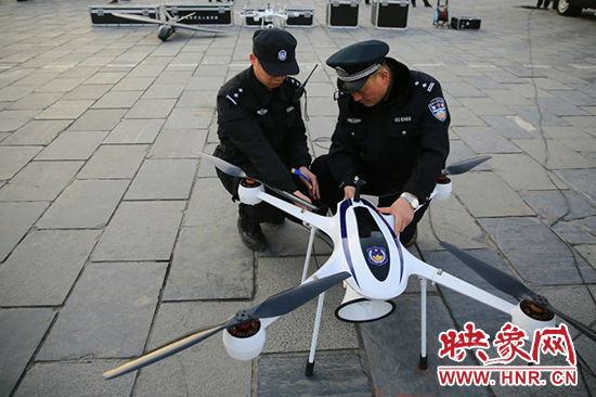 映象網(wǎng)訊(記者 王文凱 通訊員 牛智瑞 薛勇)1月20日下午,隨著首架警用無人機(jī)在滎陽市人民廣場升空試用,滎陽市治安管理正式步入“無人機(jī)時代”。這臺主要用于反恐處突、森林防火、應(yīng)急防空、交通巡查、應(yīng)急指揮、通信保障的警用無人機(jī),將在春節(jié)期間進(jìn)行空中巡邏,專盯違規(guī)在市區(qū)燃放煙花爆竹者。