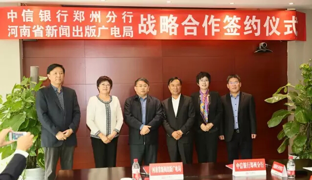 中信集團(tuán)與省廣電局有著悠久的合作歷史和良好的合作基礎(chǔ),早在2006年,中信集團(tuán)作為戰(zhàn)略合作伙伴入股河南有線電視網(wǎng)絡(luò)集團(tuán)有限公司,與省廣電一道,為整合全省有線電視網(wǎng)絡(luò)、推進(jìn)有線電視數(shù)字化等作出了積極的貢獻(xiàn)。本次中信銀行鄭州分行與省廣電局簽署戰(zhàn)略合作協(xié)議,中信銀行鄭州分行將依托中信集團(tuán)的綜合金融服務(wù)平臺優(yōu)勢,集中優(yōu)勢資源,為省廣電局提供一攬子、全方位金融服務(wù),支持省廣電局在媒體融合發(fā)展、云計算和大數(shù)據(jù)、電子商務(wù)、跨境E貿(mào)易、文化地產(chǎn)等新興產(chǎn)業(yè)領(lǐng)域持續(xù)做大做強(qiáng),助力省廣電局打造中西部地區(qū)實力最強(qiáng)、規(guī)模最大并具有很強(qiáng)傳播力、公信力、影響力的新型媒體集團(tuán)。