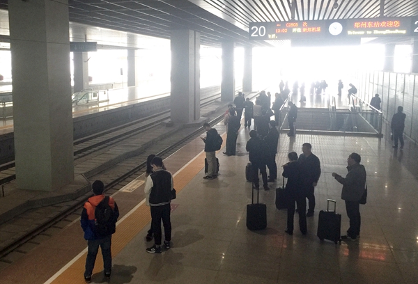 可乘坐613名乘客的班車(chē),在鄭州東站發(fā)往新鄭機(jī)場(chǎng)站的站臺(tái)上,卻只有很少的乘客在等待