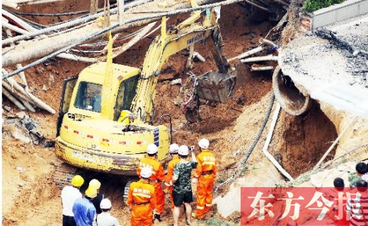 塌方發(fā)生時,一男一女被民警和熱心市民救出。目擊者稱,坑中仍有一名女士和小孩,但警方經(jīng)過排查,除了名叫張帆的女士,尚未發(fā)現(xiàn)有人員失蹤。今報三批記者輪班蹲守現(xiàn)場,截至3日2時,救援在經(jīng)歷了近30個小時后,尚未找到張帆。□東方今報記者 夏萍 見習(xí)記者 靳亞東 宋迎迎 攝影 首席記者 袁曉強(qiáng) 張曉冬 沈翔 邱琦