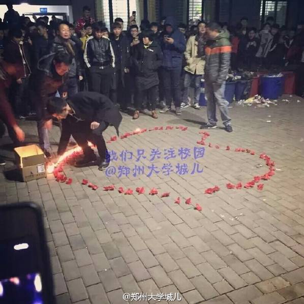 有時候表白失敗的因素不一定是被拒絕了,還有可能是學校領導的滅火器!在鄭州財經(jīng)學院,女主還沒來,一場還未開始的表白就已經(jīng)結束了,心疼那個男同學,估計現(xiàn)在那帥男已經(jīng)哭暈在廁所,嗚,領導“法海”你還我愛情。