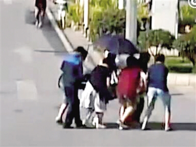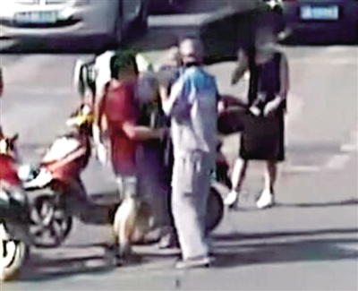 騎電動(dòng)車經(jīng)過(guò)的兩名男子見狀,立刻上前將王宏釗攙扶起來(lái),緊接著又有幾位市民趕到。一名穿著紅色上衣的男子將王宏釗扛在肩頭,一位女士給王宏釗打傘遮陽(yáng),眾人一起把王宏釗轉(zhuǎn)移到路邊。聞?dòng)嵹s來(lái)的其他交警在這個(gè)路口補(bǔ)位,繼續(xù)指揮交通。