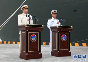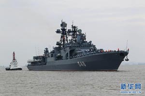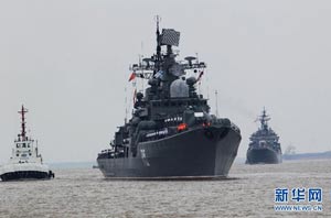 當(dāng)日,參加中俄“海上聯(lián)合—2014”軍事演習(xí)的俄方艦艇陸續(xù)駛抵上海某軍港。中俄兩國海軍互鳴禮炮,中方為來訪的俄艦舉行隆重歡迎儀式。俄羅斯太平洋艦隊旗艦“瓦良格”號導(dǎo)彈巡洋艦駛?cè)胲姼蹠r,參加歡迎儀式的軍樂隊奏響歡迎曲。隨后,“快速”號驅(qū)逐艦、“潘捷列耶夫海軍上將”號大型反潛艦、“伊利姆”號中型海洋油船、“涅維爾斯科伊海軍上將”號大型登陸艦,“卡拉爾”號海洋拖船陸續(xù)駛?cè)敫劭凇_@次聯(lián)合軍事演習(xí),中俄海軍都派出了主戰(zhàn)艦艇參加。中方參演兵力包括導(dǎo)彈驅(qū)逐艦、導(dǎo)彈護衛(wèi)艦、綜合補給艦以及導(dǎo)彈艇等水面艦艇8艘、潛艇2艘、固定翼飛機9架。俄方參演兵力包括巡洋艦、反潛艦、驅(qū)逐艦、登陸艦、油船和海洋拖船等水面艦艇6艘。此外,為執(zhí)行海上聯(lián)合解救被劫持船只、護航等特殊任務(wù),雙方還派出艦載直升機、特戰(zhàn)分隊等兵力參加此次演習(xí)。新華社記者 查春明攝