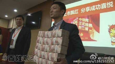 昨天,鄭州某電商公司召開(kāi)員工“分紅”大會(huì)。老板現(xiàn)場(chǎng)拿出1400萬(wàn)現(xiàn)金,用來(lái)獎(jiǎng)勵(lì)業(yè)績(jī)突出的員工。據(jù)說(shuō),一捆錢(qián)是人民幣10萬(wàn),當(dāng)天不少員工都帶著麻袋到現(xiàn)場(chǎng)領(lǐng)錢(qián)?。。。?!小編已經(jīng)不知道該說(shuō)什么,弱弱的問(wèn)一句,貴公司還招人嗎?