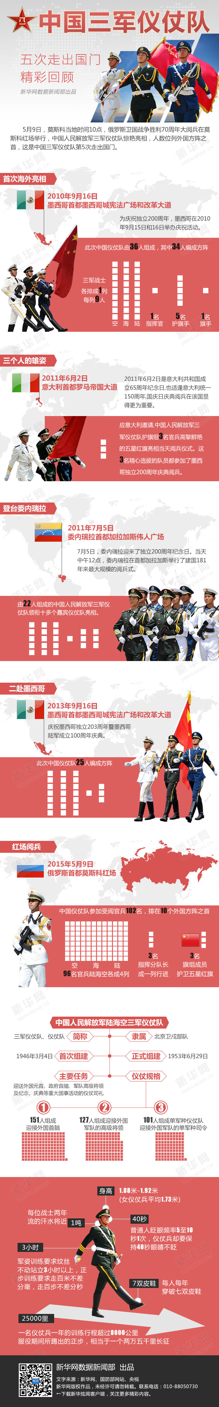 5月9日,莫斯科當(dāng)?shù)貢r(shí)間10點(diǎn),俄羅斯衛(wèi)國(guó)戰(zhàn)爭(zhēng)勝利70周年大閱兵在莫斯科紅場(chǎng)舉行,中國(guó)人民解放軍三軍儀仗隊(duì)驚艷亮相,這是中國(guó)三軍儀仗隊(duì)第5次走出國(guó)門(mén)。