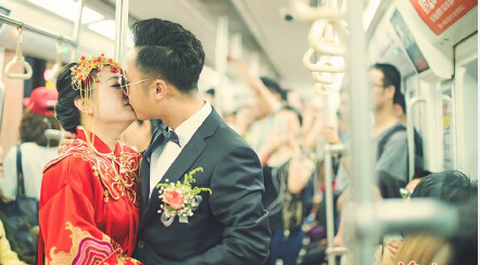 8、拉風(fēng)!西安新郎怕堵車 改坐地鐵接親