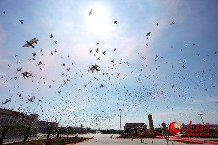 7萬只和平鴿、7萬個氣球飛向天際,閱兵式圓滿結(jié)束。網(wǎng)友許愿國家富強繁榮、世界和平永存。