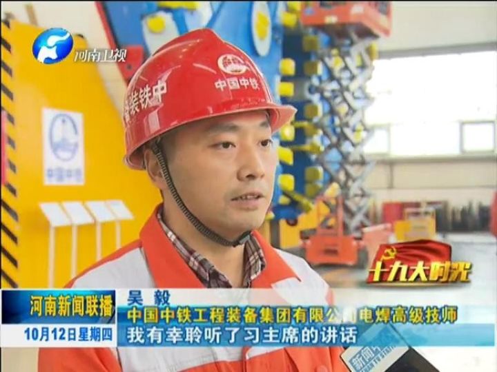 中國共產(chǎn)黨第十九次全國代表大會即將召開,今天起,河南新聞聯(lián)播推出《十九大時光》專欄,和您一起走進革命老區(qū)、田間地頭、工礦企業(yè)、街道社區(qū),傾聽基層干部群眾愛黨愛國的熱切心聲,感受人們建設(shè)出彩中原的火熱場景,聚焦十九大召開的歷史性時刻,共度這段特殊而又美好的時光。今天播出第一集《中鐵裝備:用更優(yōu)質(zhì)的中國制造喜迎十九大》。