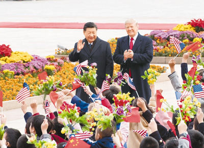 11月9日,國(guó)家主席習(xí)近平在北京人民大會(huì)堂東門(mén)外廣場(chǎng)舉行歡迎儀式,歡迎美利堅(jiān)合眾國(guó)總統(tǒng)唐納德·特朗普對(duì)中國(guó)進(jìn)行國(guó)事訪(fǎng)問(wèn)。
