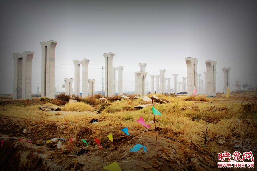 映象網(wǎng)訊(記者 王濤 巫曉 文/圖)“開放的工地,霧霾再厚重些,配以幾聲鳥鳴,或幾只尋食的烏鴉,這就是活生生的恐怖片,或者科幻片的鏡頭,在展示地球文明消失后的凄涼……”11月24日,有網(wǎng)友爆料稱,位于鄭州市南四環(huán)的京廣快速路南延工程已經(jīng)停工數(shù)月,現(xiàn)場幾百根橋墩已經(jīng)架起,場面甚是“震撼”。