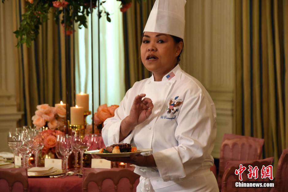 當(dāng)?shù)貢r(shí)間9月24日,美國(guó)白宮第一夫人辦公室發(fā)布了白宮為中國(guó)國(guó)家主席習(xí)近平和夫人彭麗媛舉行的國(guó)宴的菜單,并介紹了餐桌布置等情況。據(jù)這份菜單,紹興黃酒和南瓜月餅將亮相國(guó)宴。此外,白宮還邀請(qǐng)了華裔名廚參與此次國(guó)宴的準(zhǔn)備。中新社記者 刁海洋攝