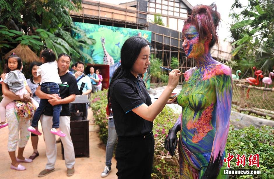 據(jù)悉,三亞彩色動物園舉辦此次美女人體彩繪活動,旨在傳播愛護動物、尊重生命以及人與動物和諧共處的理念,讓更多的人了解并參與到保護動物的隊伍中來。 陳超 攝
