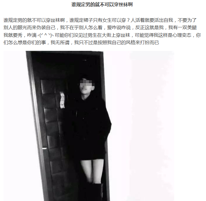 好吧,小編還是第一次見到這位網(wǎng)紅,難免心情有些小激動。畢竟每個(gè)人都有一顆愛美的心和追求美的權(quán)利。只是這位小伙很“勇敢”的表達(dá)出了自己內(nèi)最深處的想法和最真實(shí)真是的自我。對此,小編只想說:請收下我的膝蓋!實(shí)在是佩服佩服!最后,也祝愿這位小伙早日找到能夠陪伴自己相愛一生的伴侶。