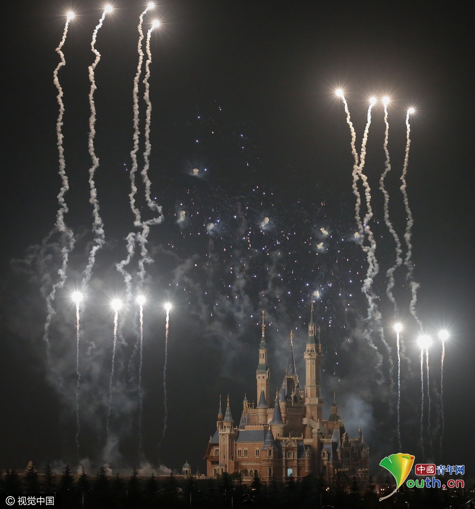 2016年3月28日晚,上海迪士尼樂園進(jìn)行了第一次煙花試放。晚上9時許,兩道明亮的煙火在人們的歡呼中劃破天際。在隨后的27分鐘內(nèi),10余組姿態(tài)各異的煙火在空中依次綻放,萬千煙花“噴薄”而出,迪士尼城堡在煙火的照射下清晰可見。
