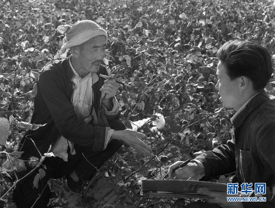 圖為植棉能手吳吉昌(左)在棉田里介紹他的植棉經驗。一張照片,定格一個瞬間;一組群像,打開一部史冊。中國共產黨成立95周年之際,我們選取新華社中國照片檔案館珍藏的資料照片,展現(xiàn)中國共產黨人特有的“紅色氣質”。新華社發(fā)