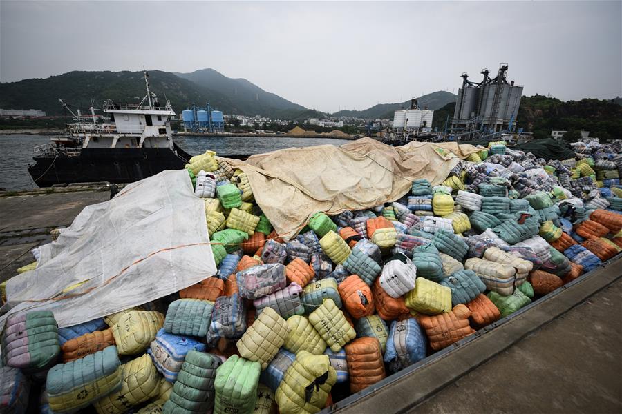 廣東邊防總隊(duì)深圳市邊防支隊(duì)近日偵破一起團(tuán)伙走私舊服裝大案,打掉一個(gè)專業(yè)走私舊服裝的犯罪團(tuán)伙,抓獲犯罪嫌疑人6名,并在涉嫌從香港走私“洋垃圾”到內(nèi)地的“利運(yùn)達(dá)號(hào)”貨船上查繳舊服裝、帆布等549噸,案值約1100萬(wàn)元。圖為8月9日拍攝的涉嫌從香港走私“洋垃圾”到內(nèi)地的“利運(yùn)達(dá)號(hào)”貨船和繳獲的舊衣物。 新華社記者 毛思倩 攝 圖片來(lái)源:新華網(wǎng)